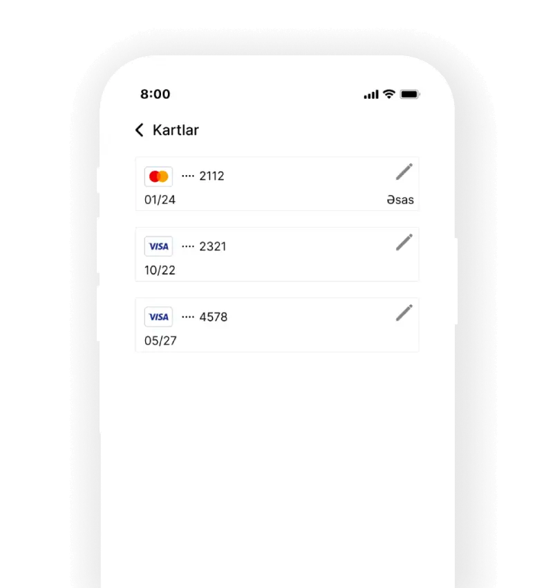 Müştəriləriniz PCI-DSS sertifikatlı infrastruktura malik kart saxlama ilə güvənli şəkildə kartlarını öz hesablarında saxlaya biləcək